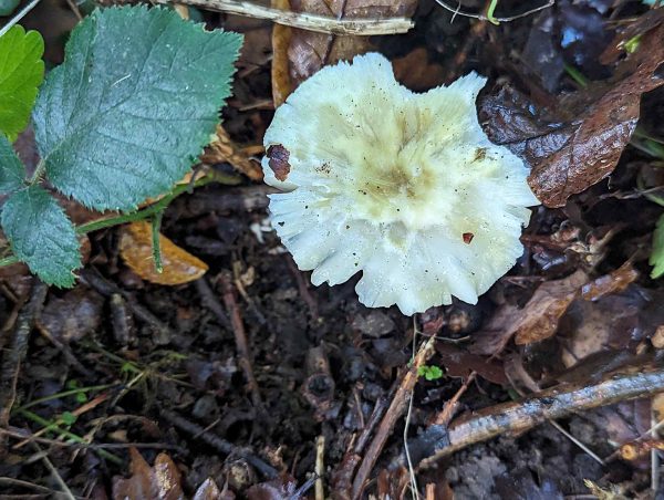 This had a yellowish-green, slightly depressed cap which faded to white at the edge.