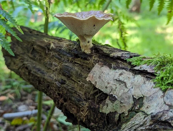This fungus grew on its own on a large log.