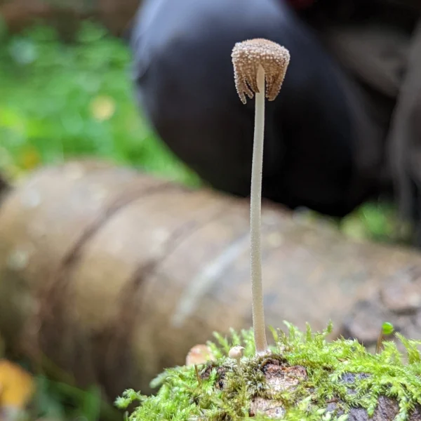 This oddly-shaped fungus had a distinctive ‘coprinoid’ look, but its cap was covered in white speckles.