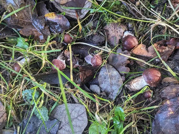 The more mature fungi had flattened caps, with furry, fibrous stems and brown gills.