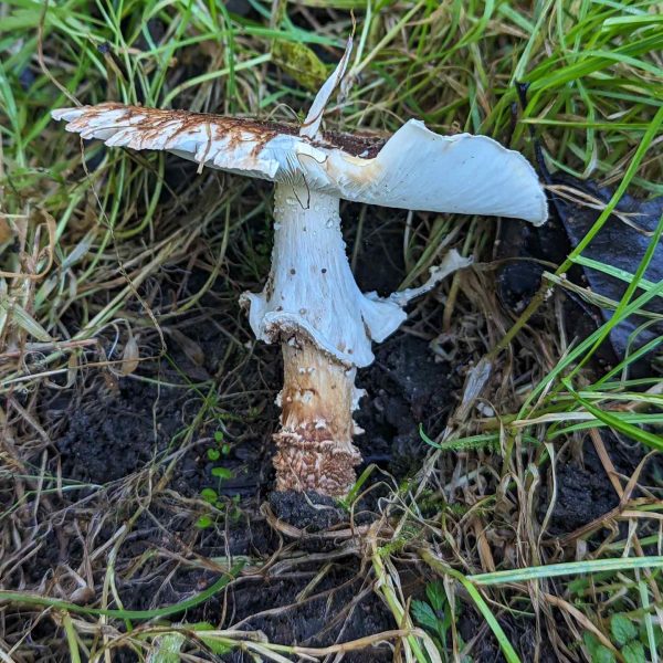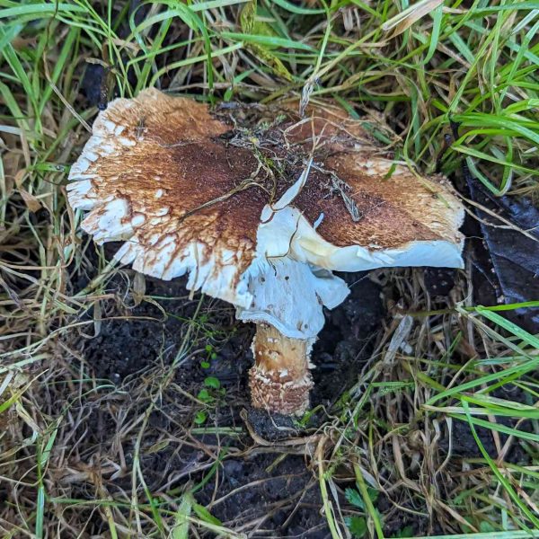 This grew solitarily in the grass of the Basecamp railway path and had a cap covered in reddish-brown to orange-brown scales.