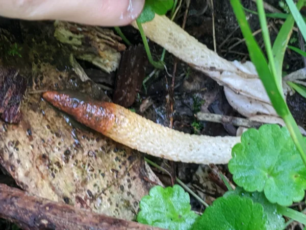 These two Mutinus caninus were 70mm long, growing from a white sac-like egg.