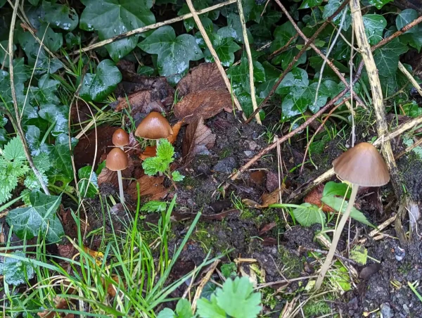 Later I found some with mottled fawn caps and dark greyish-brown gills.