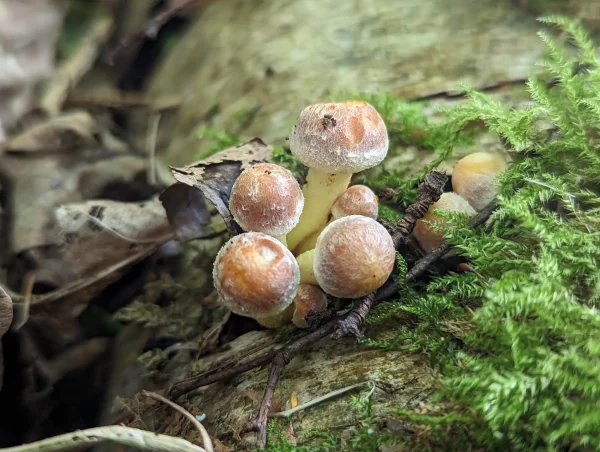 They had brownish-orange, ovate caps, which faded to cream at their edges.