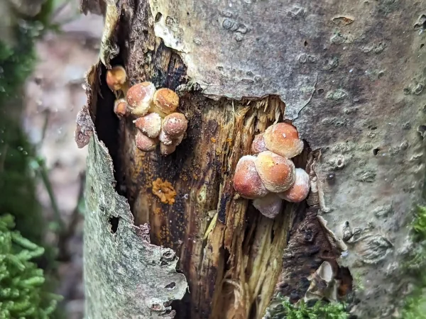 I found these growing in two locations: off rotting, mossy Birch and Hazel wood.