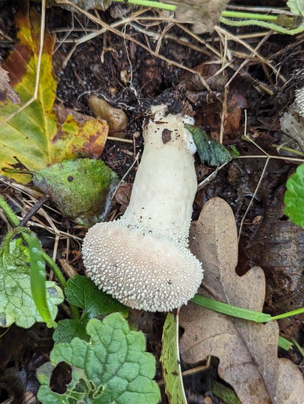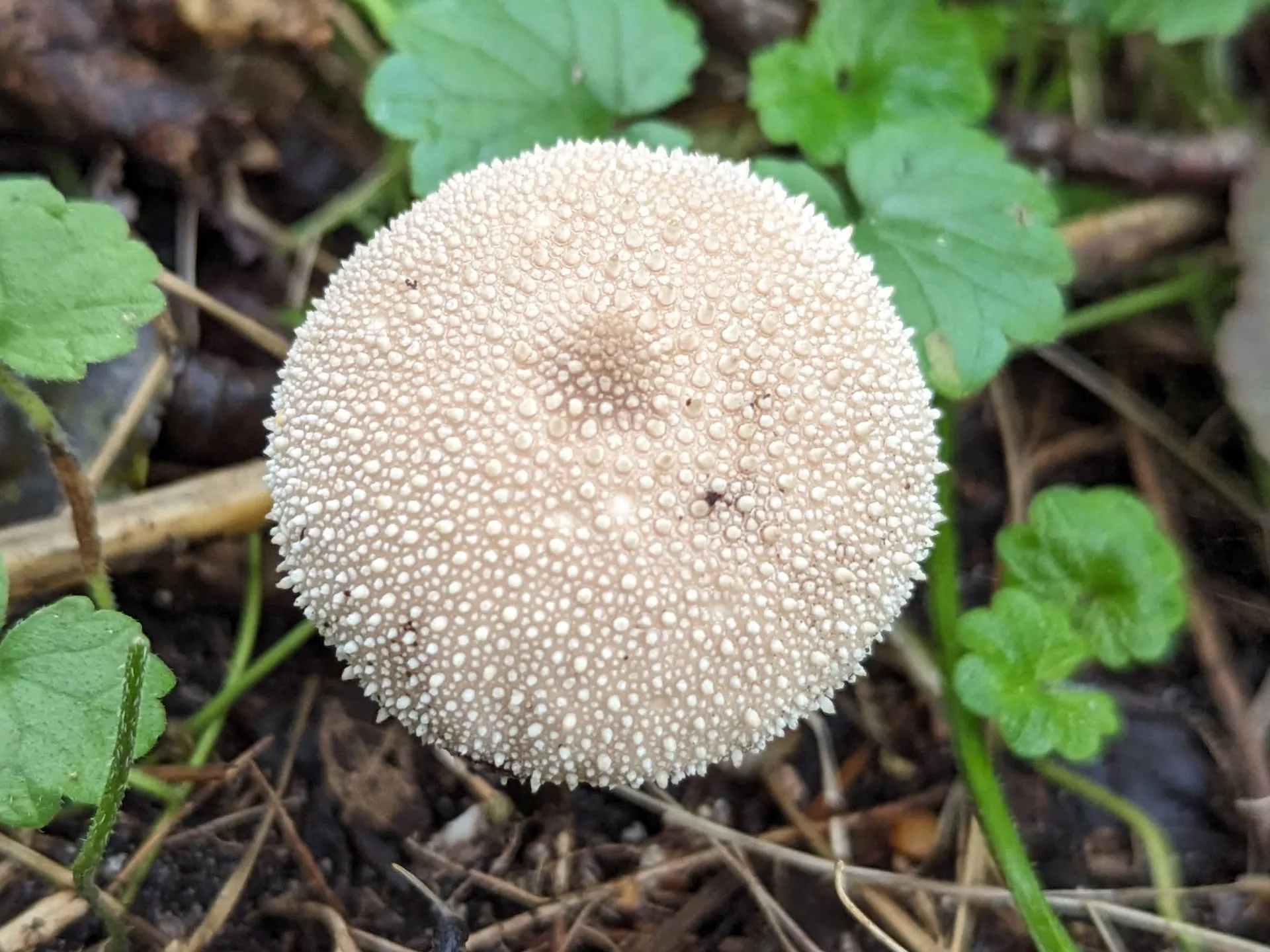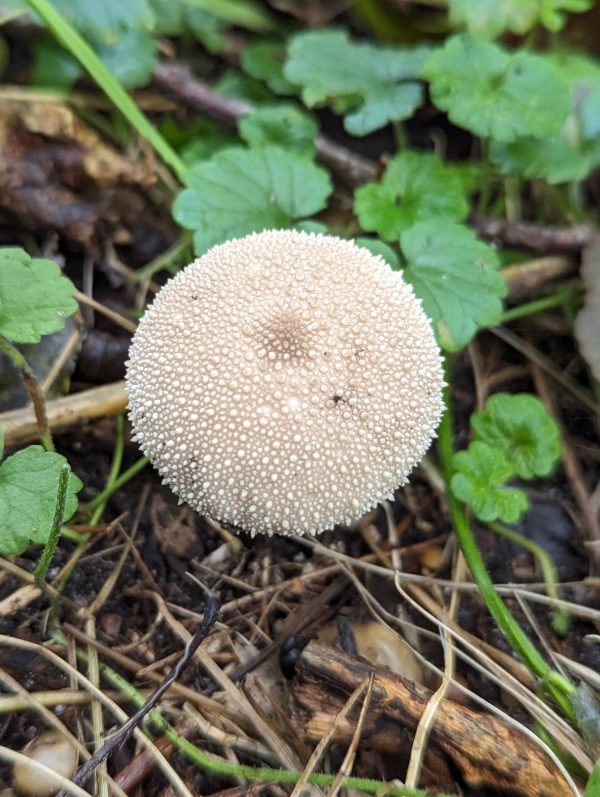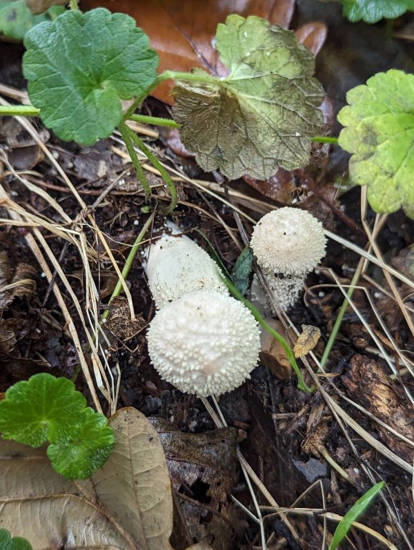 I found these spiky, white puffballs on the side of the path in leaf litter.