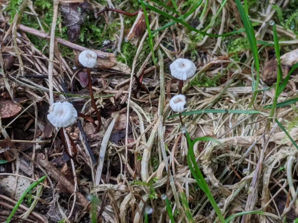 The stem was 10–15mm tall and 1mm thick- a dark reddish colour, fading to black at the base.