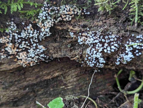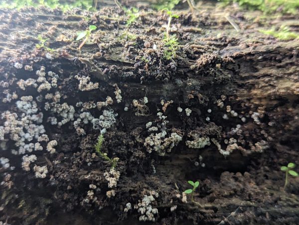 I thought this could be Metatrichia floriformis, but all I’ve found is that this species had brick-red or orangish spores, not white or buff spores as this one appears to have.
