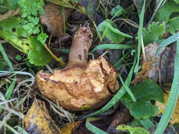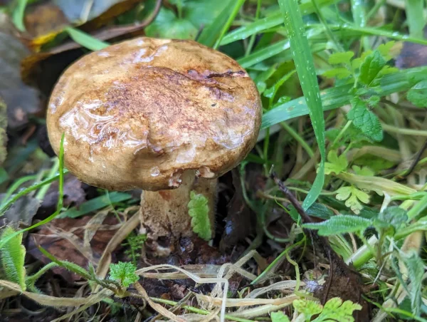 It had a slippery, brown cap with a hairy texture and the stem was cream with brown flesh.
