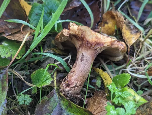 This fungus grew on its own in leaf litter.