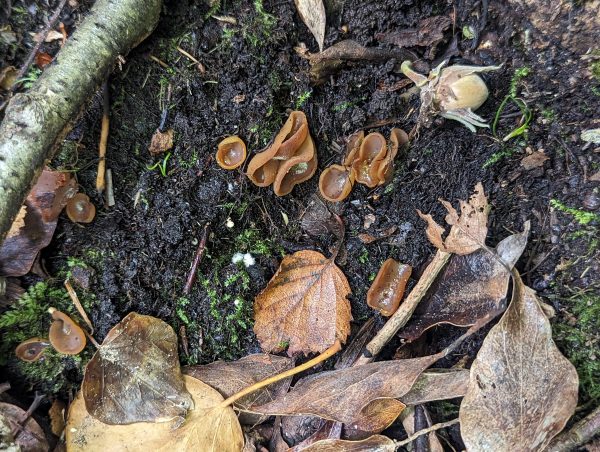 The caps were dark, orange-brown and wavy, with cinnamon-buff outer surfaces.