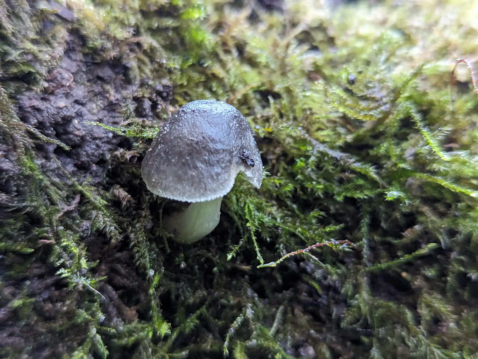 It had a conical, light-fuscous cap with a white edge and a white stem.