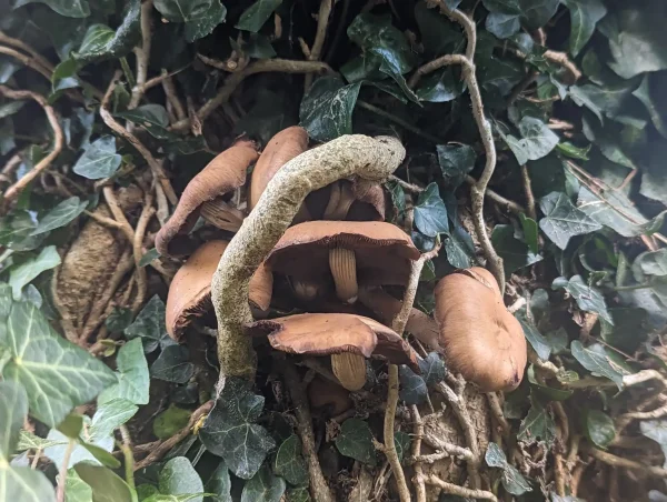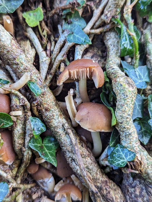 They had dried out on Day 13 (28 October 2023): the caps were a more orange-brown with white fibrils on their edges.