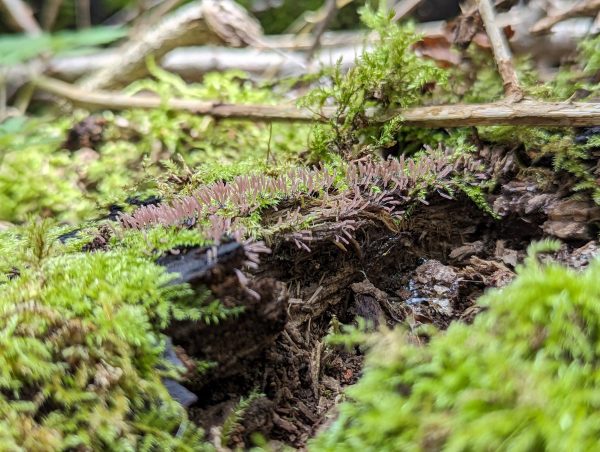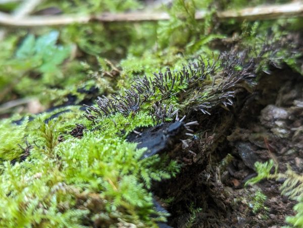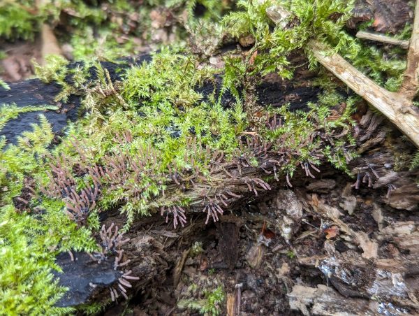 I saw this large group on a mossy, rotting log pile with other slime-moulds.