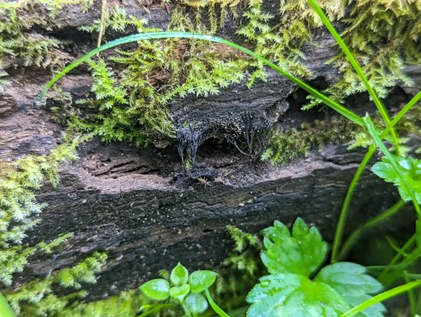 Found on a rotting log, these Stemonitis had turned black and thin.