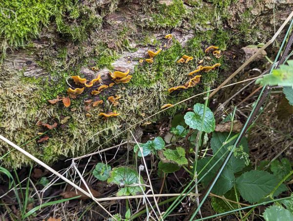 Found on a rotting, fallen trunk on the left of the Drainage Channel Path, these had a brownish orange surface which faded to yellowish brown at the rounded edge.