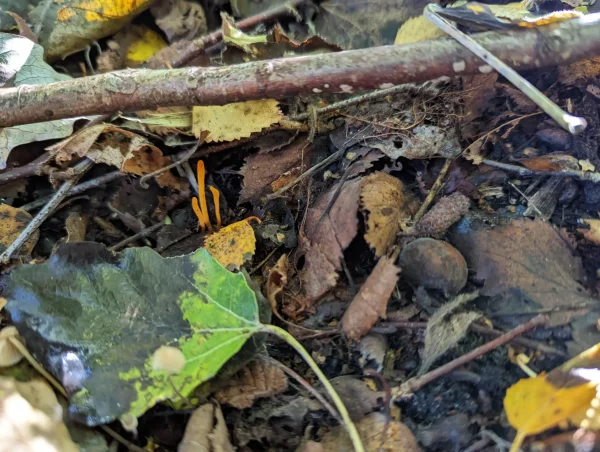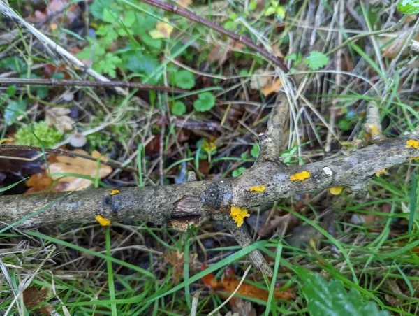 In the vicinity I found some Tremella mesenterica (Fig. 5.6) and some orange fungi covering the nearby mossy logs (Fig. 5.7).