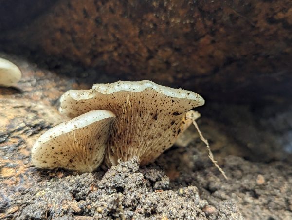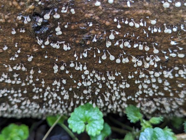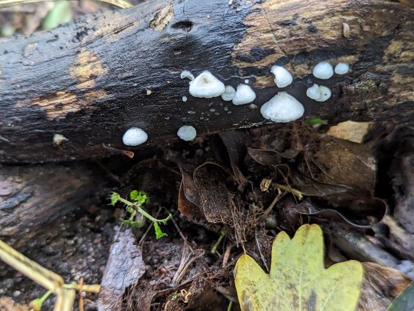 Around the logs at Basecamp, I found some Parasola conopilea and a group of unidentified slimy white bracket fungi (Fig. 14.2).