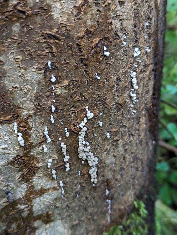 All over the reserve woodland, I saw large groups of Coprinellus micaceus — particularly around the Basecamp log circle.