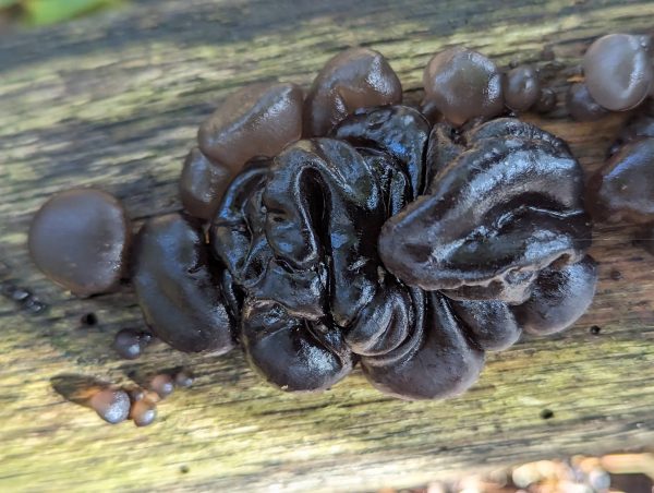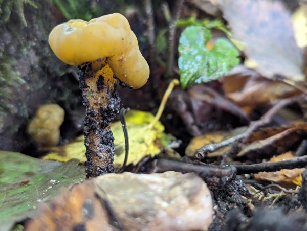I found an odd looking fungus (Fig. 14.9), which may have been Leota lubrica, on the leaf litter.