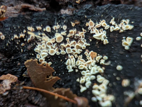 Past The Outpost, I spotted a group of Physarum album (Fig. 21.4), some Hemitrichia clavata (Fig. 21.5) and Eupezizella roseoguttata (Fig. 21.6).