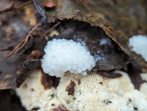 Just before The Outpost I saw a patch of white Stemonitis (Fig. 21.0) and a small group of Physarum album (Fig. 21.1) on a leaf.