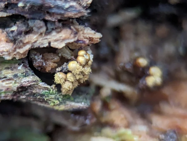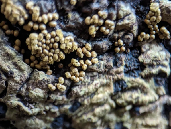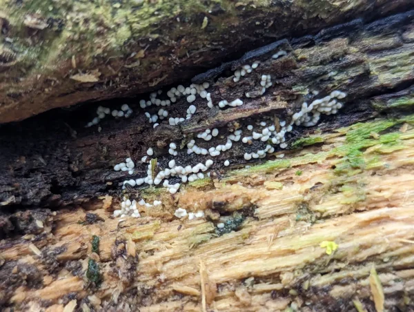 I spotted these on old trunks and branches in a few, scattered groups.