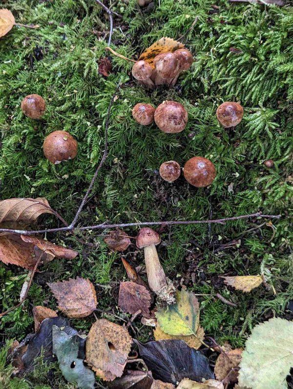 On Day 9 (30 September 2023) they had appeared on damp leaf litter by the central Birch.