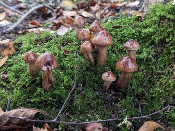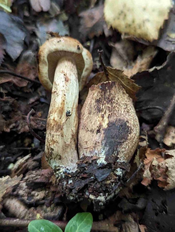 These had large orange-yellow stems — which tapered upwards — and mouldy, greyish brown caps.
