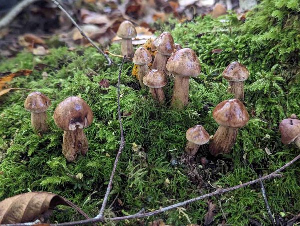 These had large orange-yellow stems — which tapered upwards — and mouldy, greyish brown caps.