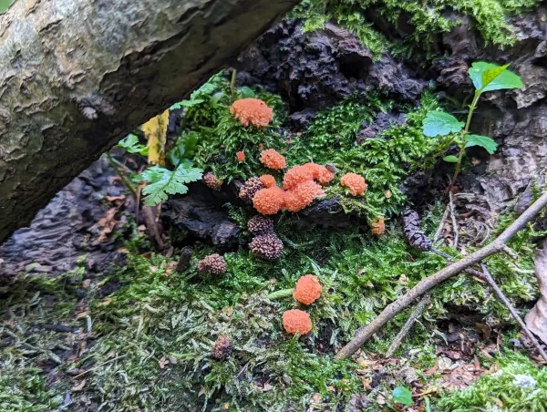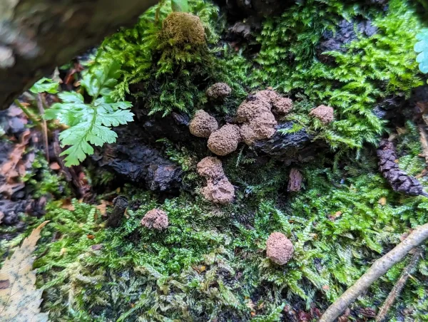On a mossy Alder branch, I found several pseudoaethalia clumps and several spore-mass clumps.
