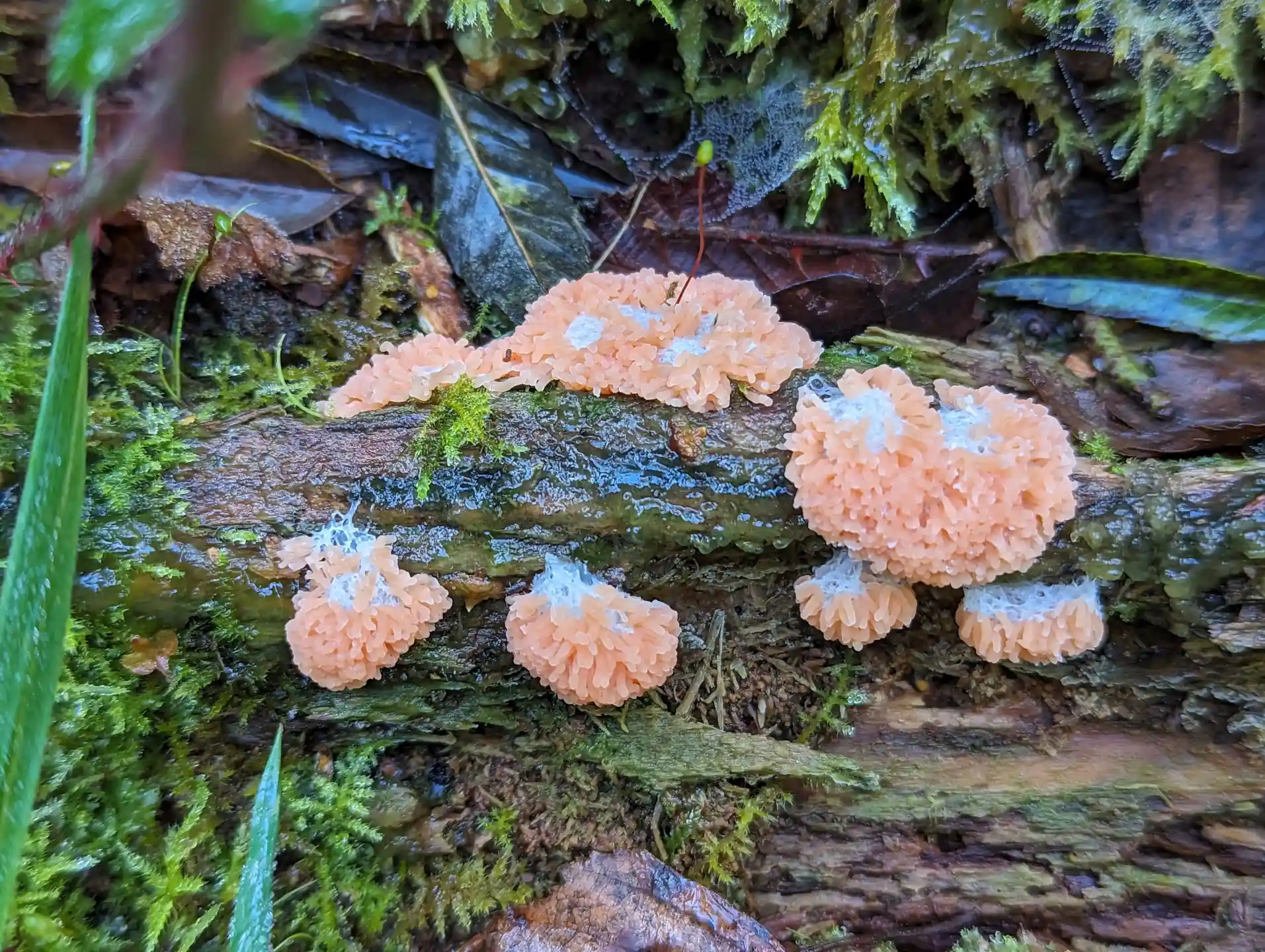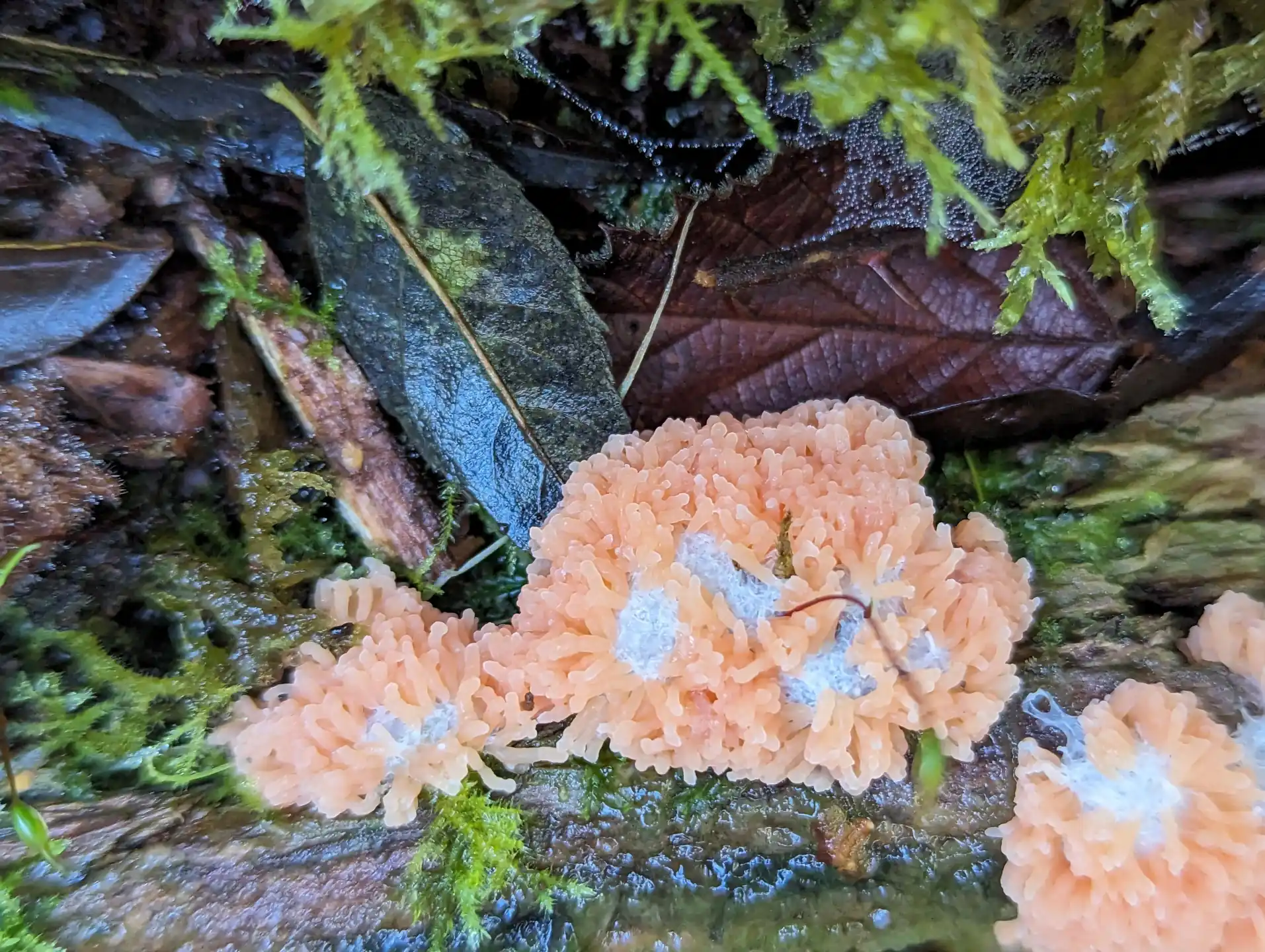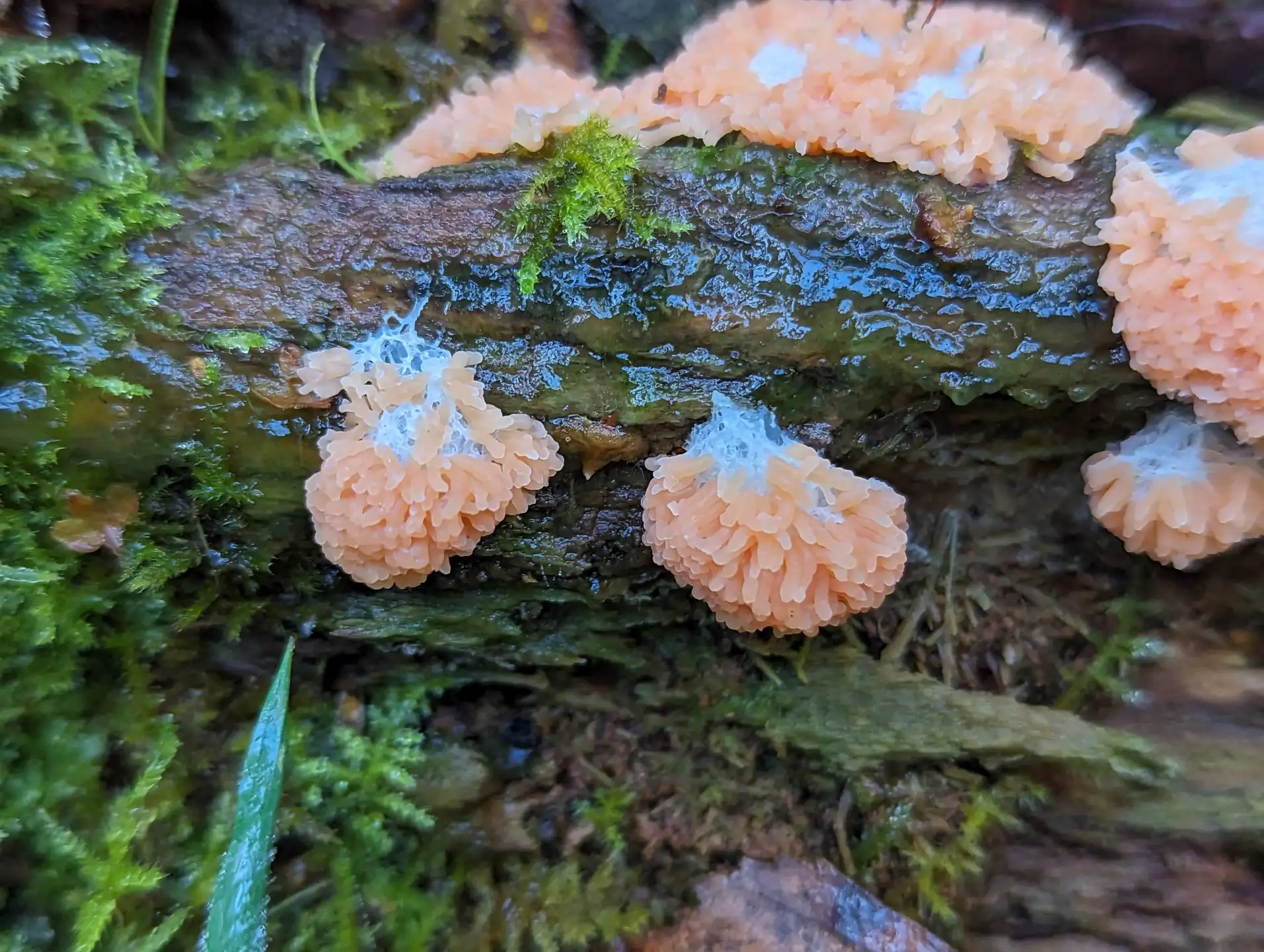 They were a mass of bright, peach tubules growing from a white cob-web-like hypothallus.
