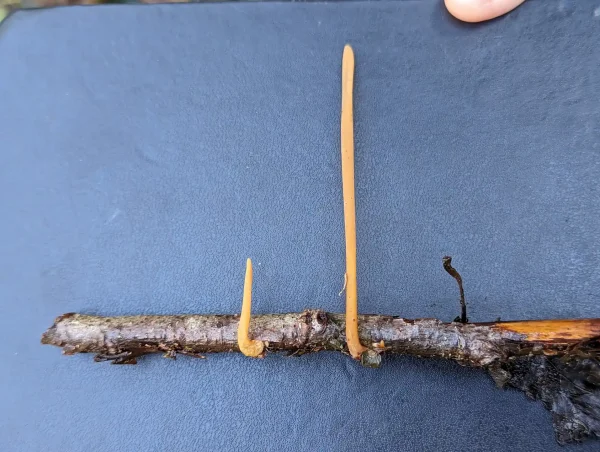 On Day 14 (03 November 2023), I found another couple of Typhula fistulosa on a twig.
