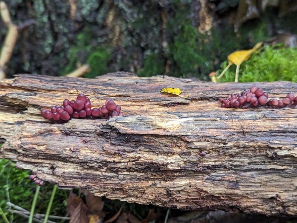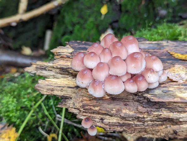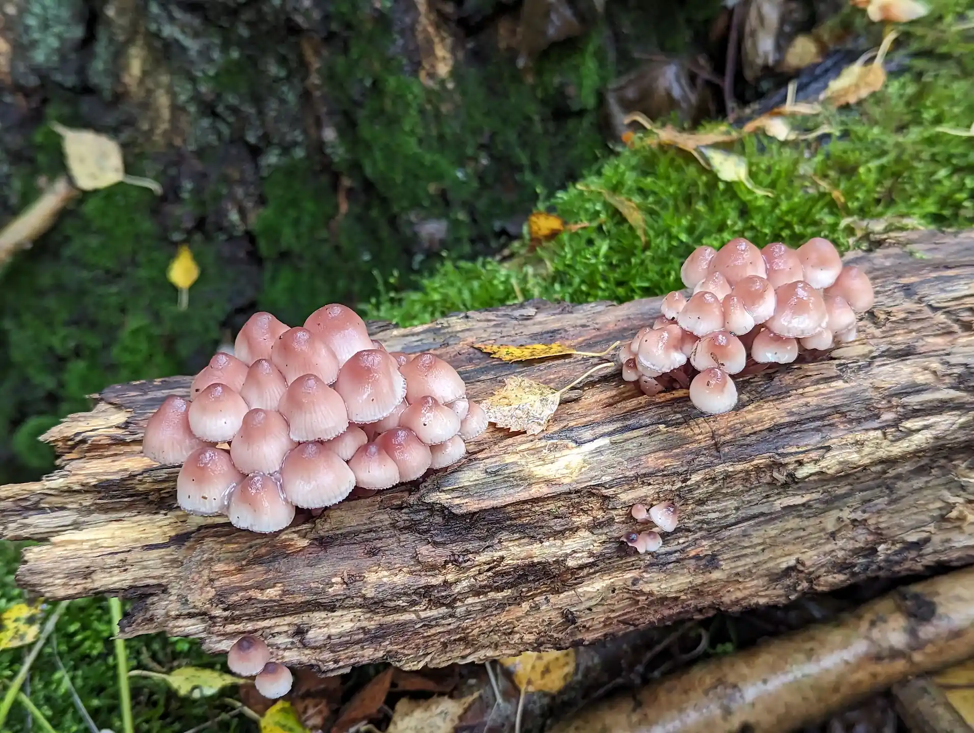 These grew out of a crack in a rotting log in a tightly clustered group.