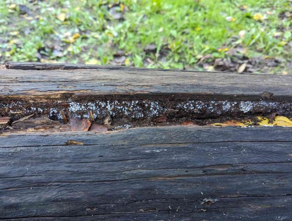 Inside one of the large logs at Basecamp, these tiny, white blobs grew in clusters of various sizes.