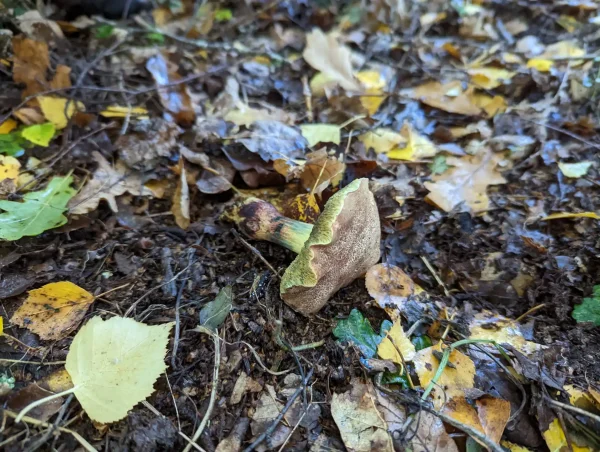 These fungi had large greyish brown caps with pink cracks and a white edge.